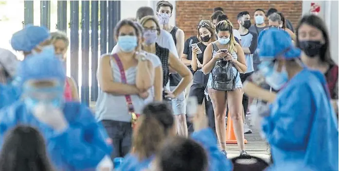 Por primera vez desde el inicio de la pandemia, la Argentina superó ayer la barrera de los 100.000 casos de Covid informados en un día. La aceleración de los contagios ya hizo colapsar el sistema de testeos y, según infectólogos, podría empezar a resentir otros servicios de salud. No se descarta que la cifra de infectados diarios se duplique en una semana, mientras se estima que la nueva ola duraría por lo menos un mes.