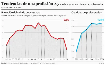 Por su parte, Alejandro Morduchowicz le dijo a Clarín que “para recuperar los niveles salariales de años atrás hay dos alternativas: la deseable y la posible. La primera es generar las condiciones que permitieron esa mejora. Eso se logró a través del compromiso en la inversión educativa de los gobiernos nacional y provinciales. Esto requiere de ciertas condiciones macroeconómicas; por eso, mientras se trabaja en esa línea, habría que avanzar con la alternativa posible.
